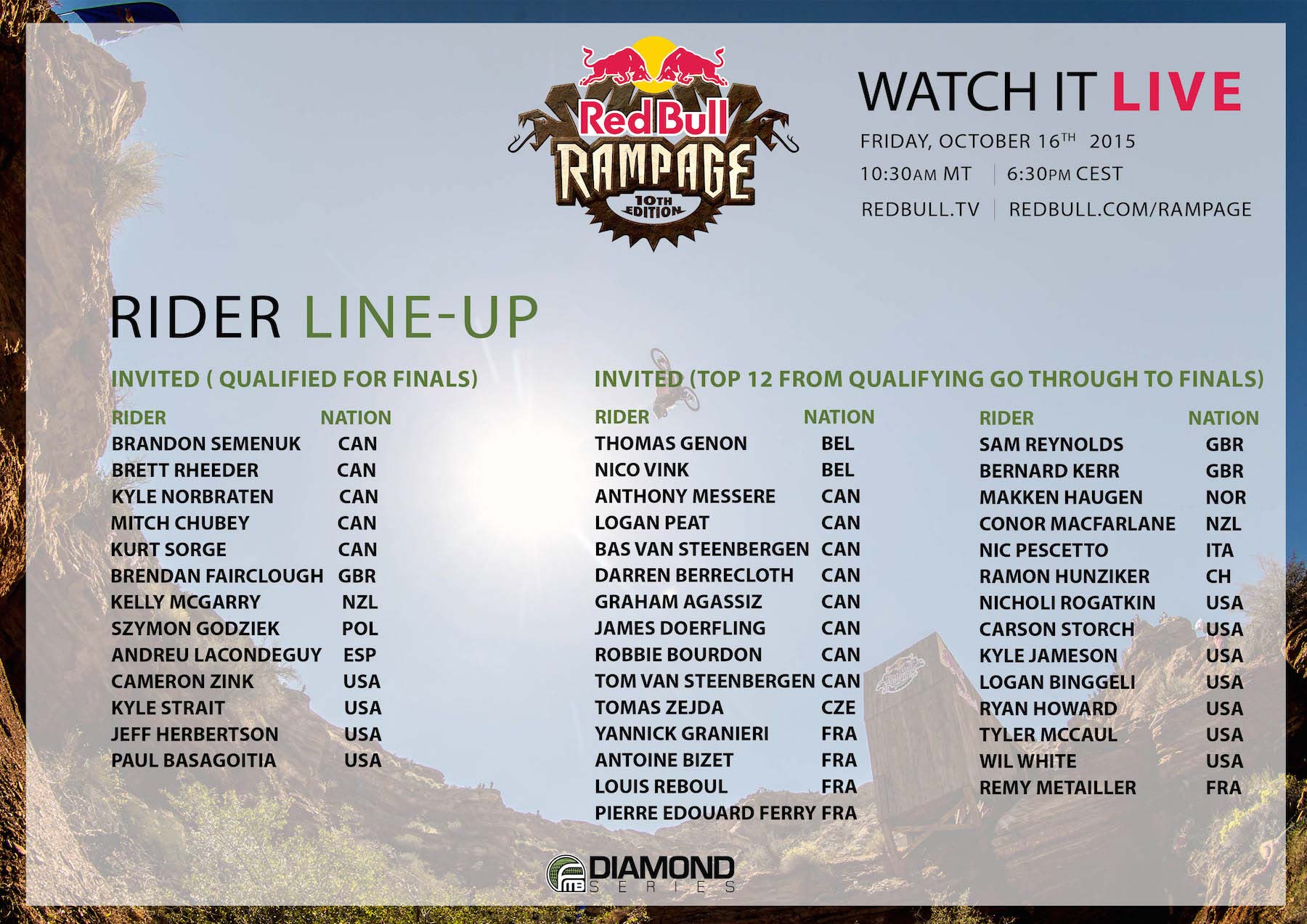 Red Bull Rampage 2015 startet nicht wie gewöhnlich am Samstag 17.10.15 sondern wird wegen schlechten Wetterprognosen auf Freitag den 16.10.15 um 18:30 Uhr unserer Zeit vorverlegt!